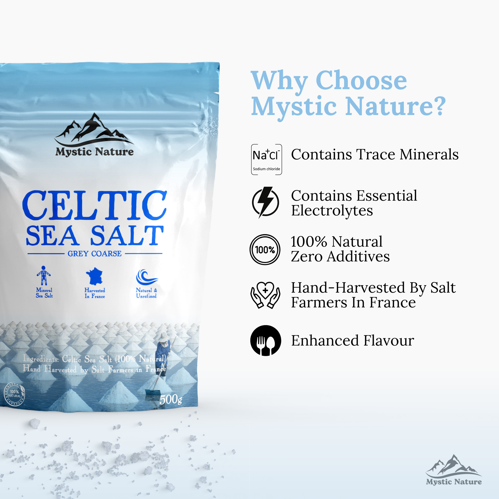 Discover The Secret To Optimal Well Being With Mystic Nature Celtic Sea Salt! Packed With Minerals And Trace Elements, Our Salt Is A 100% Natural Source Of Goodness For Your Body - Unrefined And Free From Any Added Ingredients.